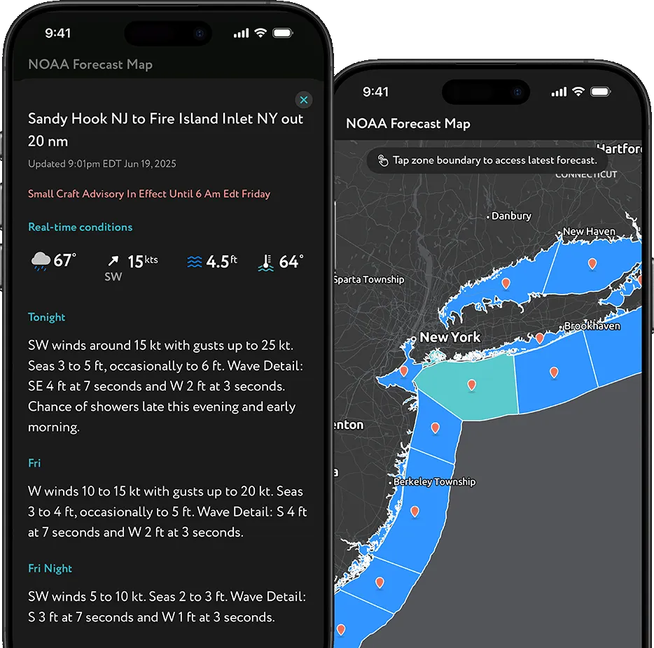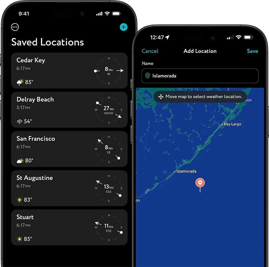 Marine conditions, tides and forecasts on Home and Lock Screens.