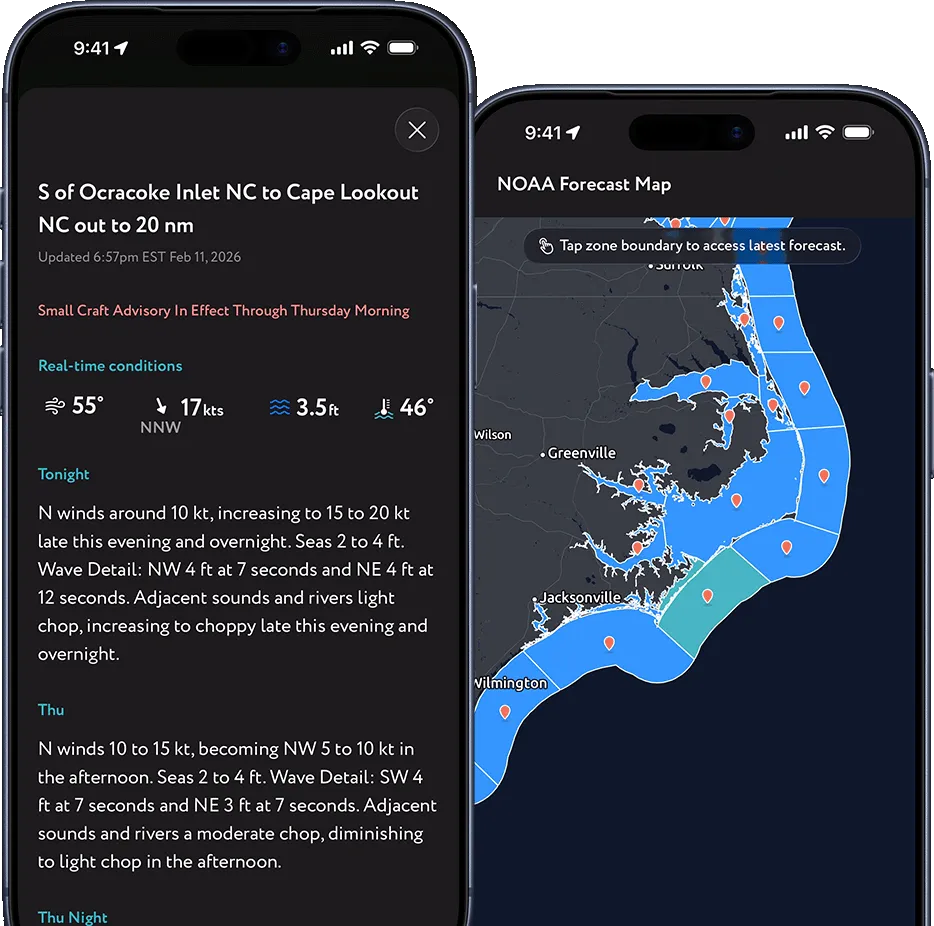 Marine conditions, tides and forecasts on Home and Lock Screens.